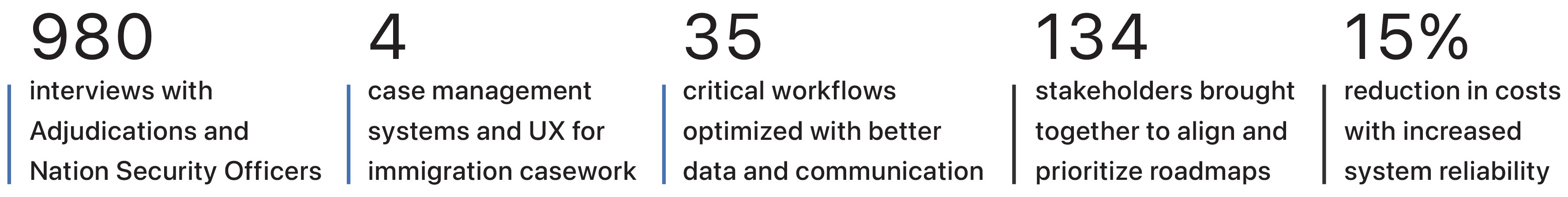 As immigration challenges grew more urgent, we focused on putting people first. By listening, testing ideas quickly, and working hand-in-hand with those on the ground, we built tools that made managing cases simpler and security checks more reliable, helping systems work better for everyone involved.